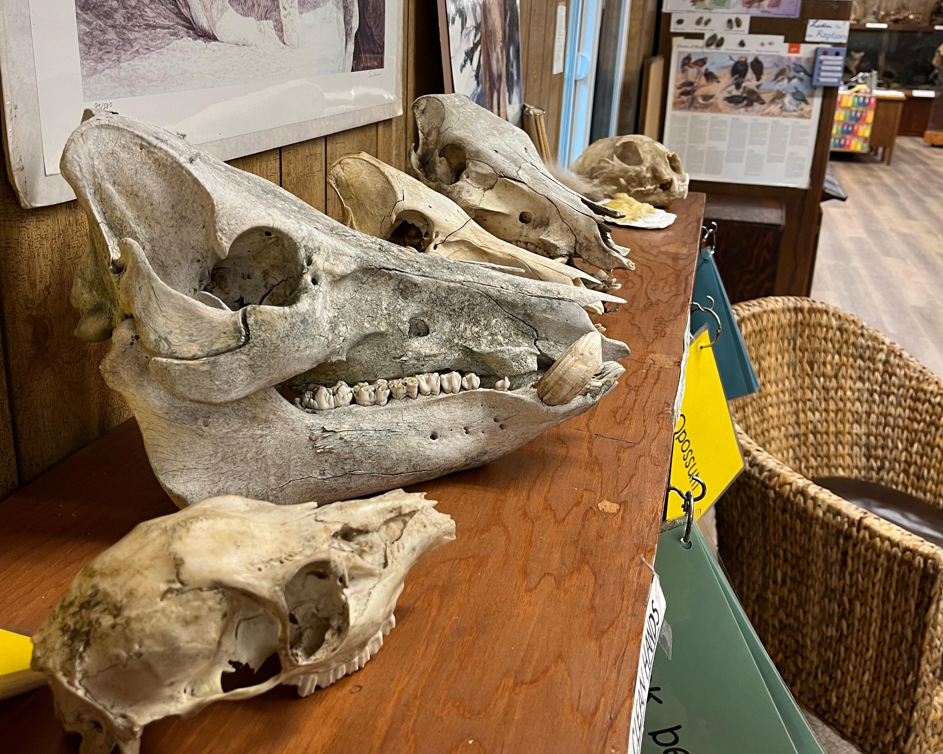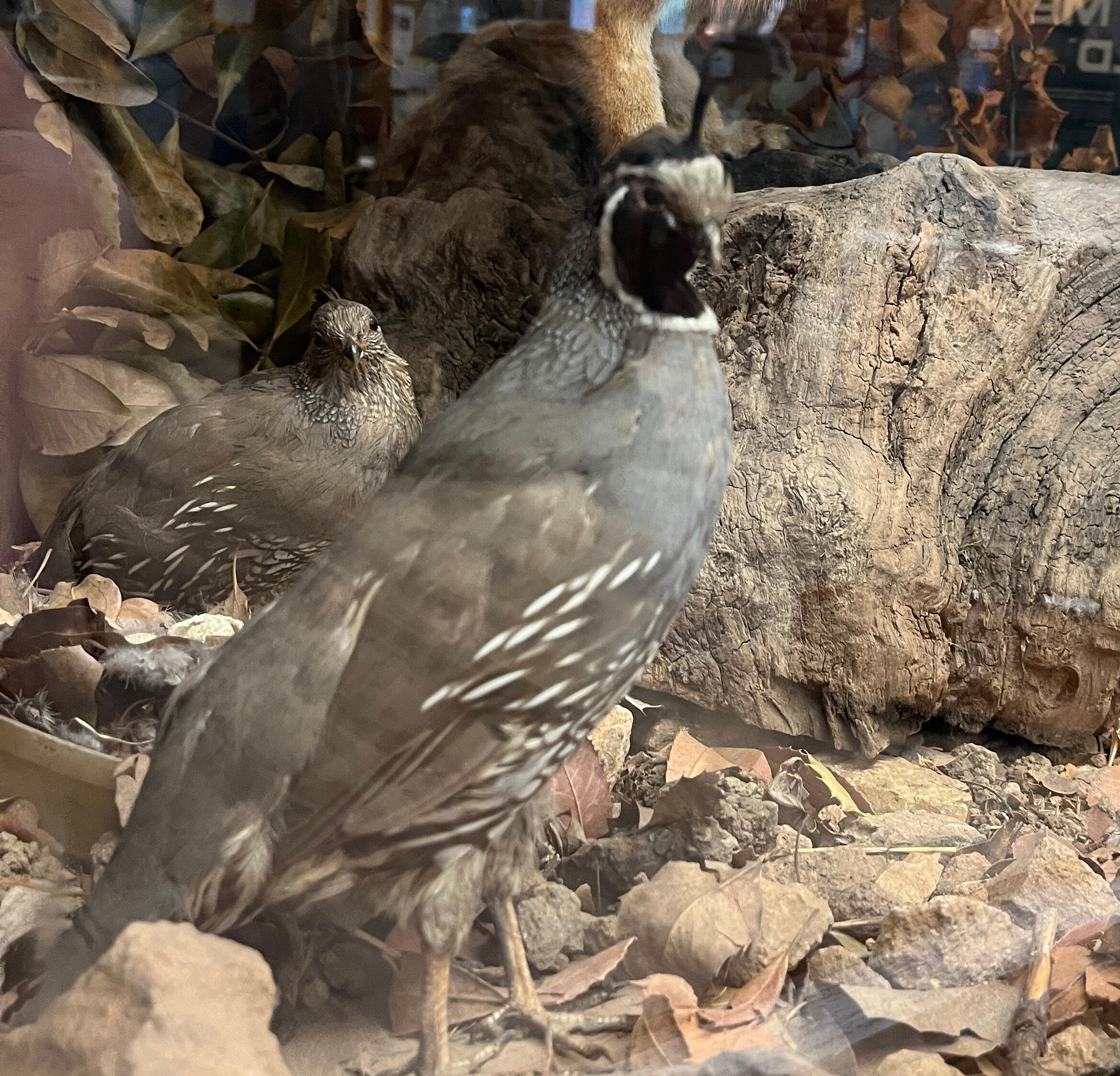 We have 5 biome based exhibits representing our surrounding Napa habitats. Wetlands, Chaparral, Woodlands, Riparian, and Grasslands. We also have a Raptor display as well as bird skulls, curio cabinet, and skulls and pelts.In addition to our stunning collection we host a naturalist library, geological displays, an interactive quiz board and many other natural artifacts and seasonal displays!